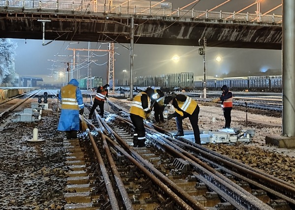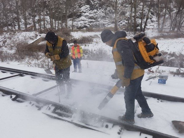 人民網(wǎng)哈爾濱11月6日電 (尚城)11月6日,黑龍江省迎來暴雪、雨雪冰凍、大風(fēng)天氣,此次過程影響范圍廣、降雪量大,局地降水量可能接近或突破歷史同期極值。中國鐵路哈爾濱局集團(tuán)有限公司第一時間對受降雪影響主要鐵路區(qū)段啟動預(yù)警,調(diào)集大功率風(fēng)力除雪機(jī)、重型軌道車、除雪車輛、熱滑除冰列車等設(shè)備參與除雪工作。為確保旅客列車和人民群眾出行絕對安全,哈鐵有序開展行車調(diào)度、清冰除雪、設(shè)備巡檢、旅客疏導(dǎo)、安全防護(hù)等應(yīng)急處置工作,根據(jù)雪情科學(xué)調(diào)整運輸方案,盡最大努力減少惡劣天氣對運輸秩序的影響。